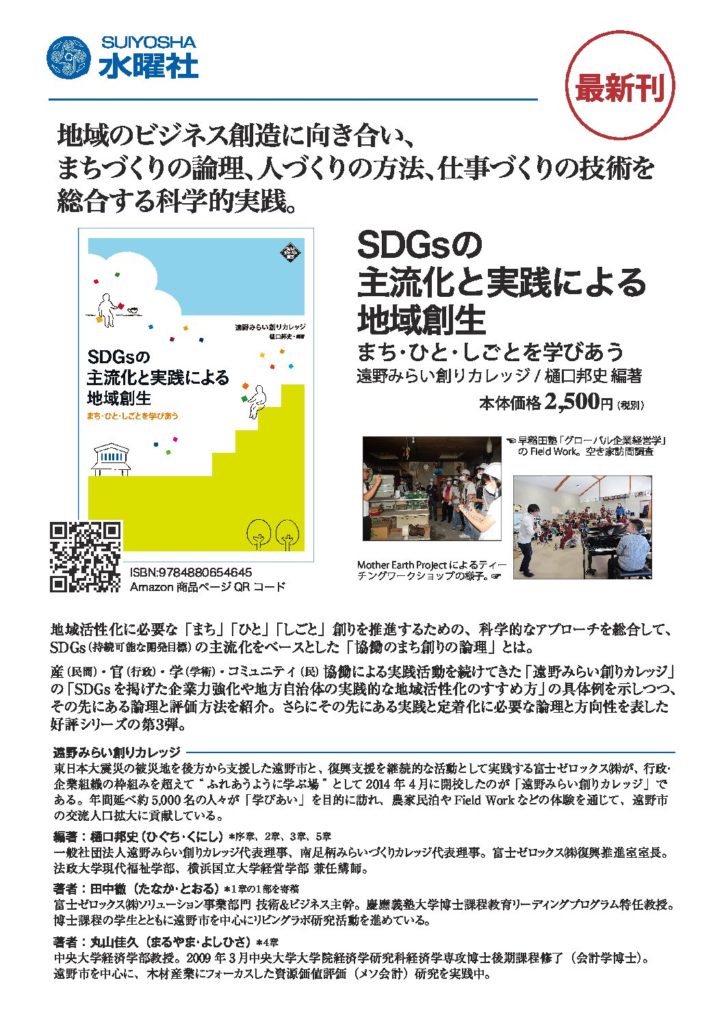 ・「地域社会の未来を拓く」2015年9月;水曜社(まち創り叢書)、遠野みらい創りカレッジ編