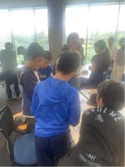 小学生の富士見町の課題把握や探求学習についての意見交換 - 中央大学キャンパスにて:富士見小学校修学旅行の日程内で 2 時間の小学生向け